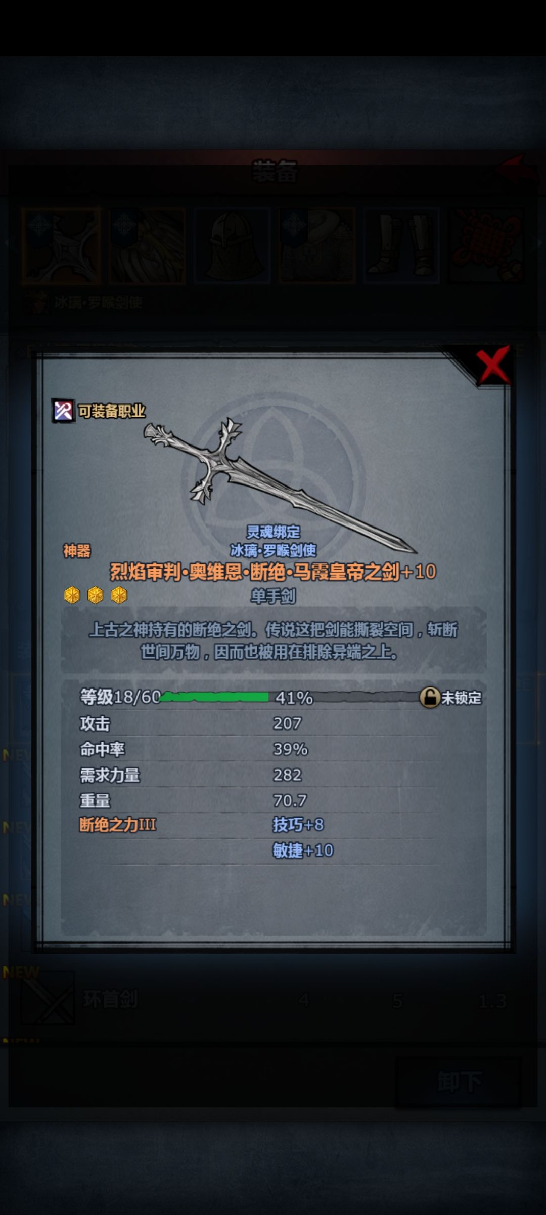 至于神器的属性,我偏向于 力技敏,可以保证一些低敏王血也可以触发偏斜和移形换影