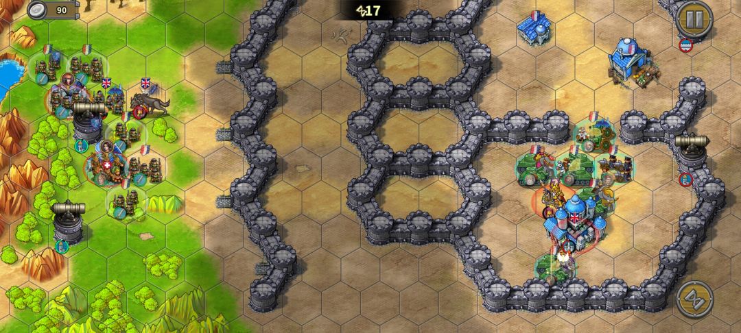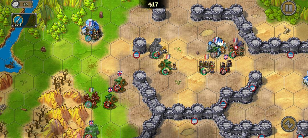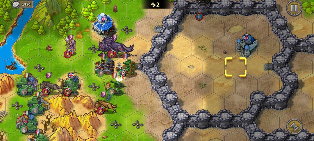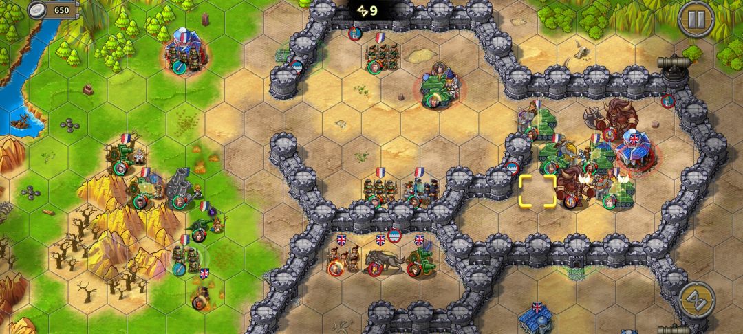 炮兵往山左侧移动,血量健康时可在山右吃一轮伤害再撤,首要目标给骑兵垫刀,次要目标守家。