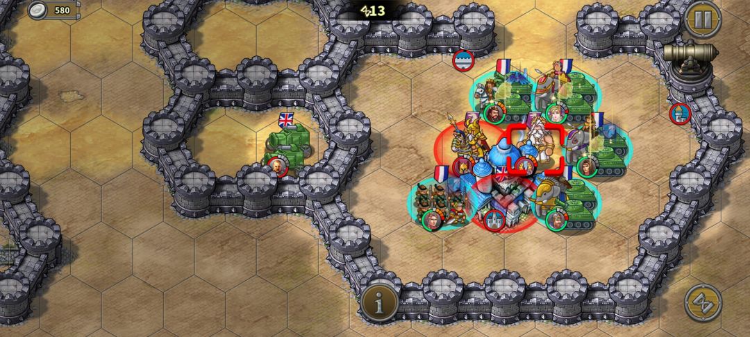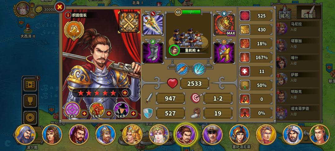 第二回合炮兵前冲把毒瘤炮塔点掉,凯撒往前,奶弓撤回骑兵营并且站住不动。织田开始给boss们上debuff,阿育王和黑太子只允许去打织田上好debuff的人。