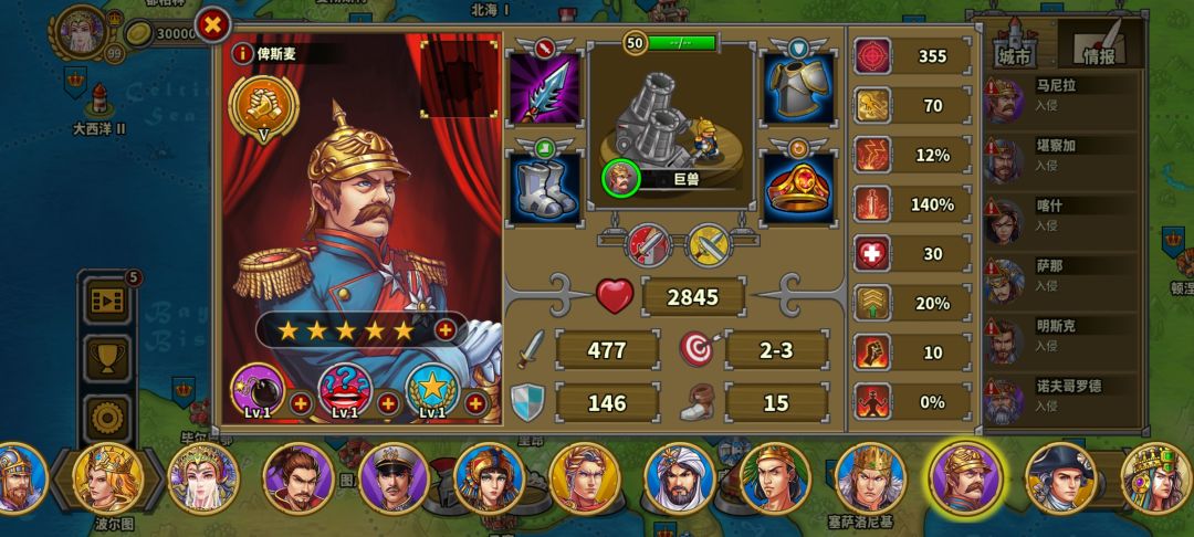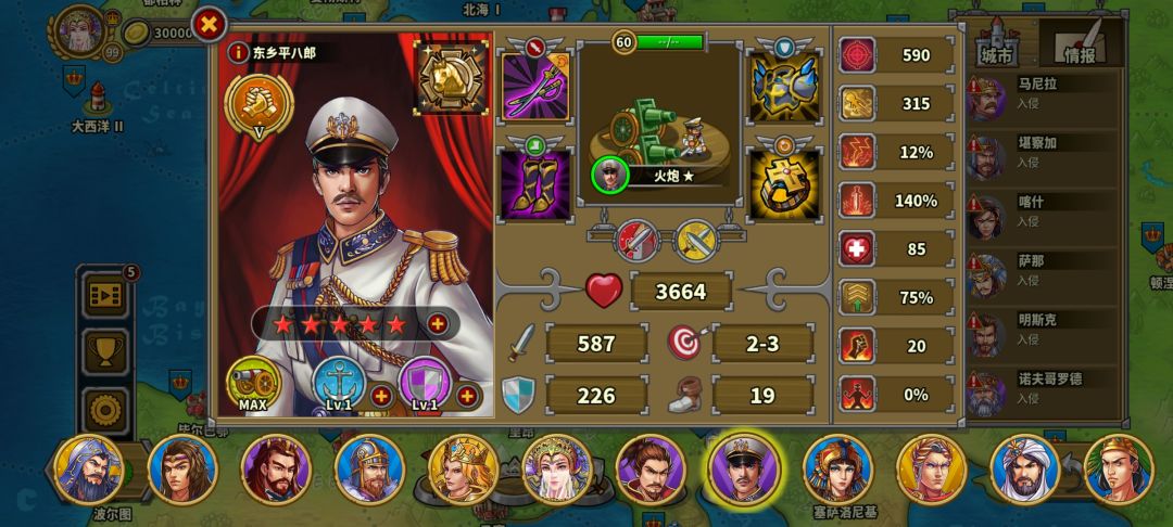 左上骑兵营1步兵足够,炮兵和其他将领堆在第一房间,老家的奶弓在无名将群没来的时候可以出来咬一下向上走的无名将尾巴