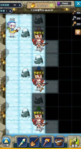 (从上到下看一眼第一个守卫,有英雄守卫能刷则刷,关卡口在右下角)