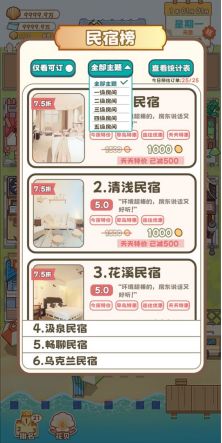 同时排行榜上的其他民宿也会根据自己的入住率来动态调整自己的价格。升级房屋,设置折扣,将会是房东系统的主要玩法。不同的选择将会产生很大的差异!