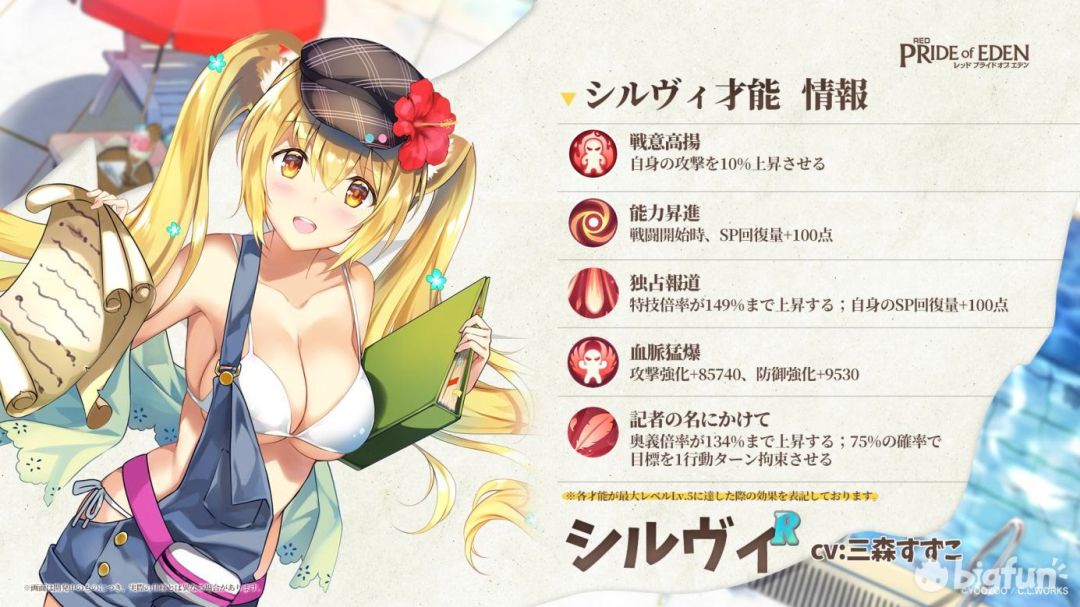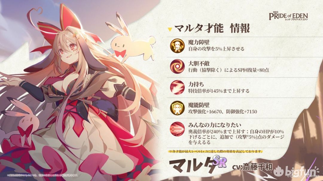 特技SP回复75→100,当自己SP比目标高时,追加攻击力20%→35%的伤害