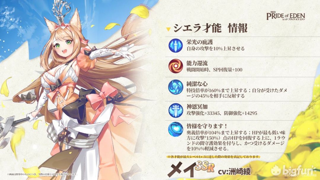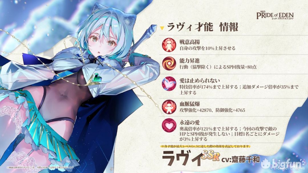 永远的爱:奥义倍率97%→121%,此次攻击不触发HP和SP回复,每有一名目标伤害上升3%
