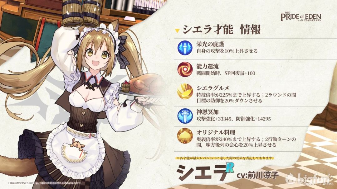 魔力障壁:自身攻击力上升10%无所畏惧:战斗开始时,SP回复100