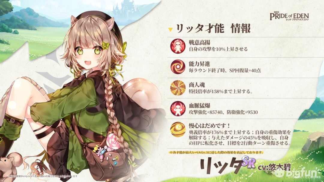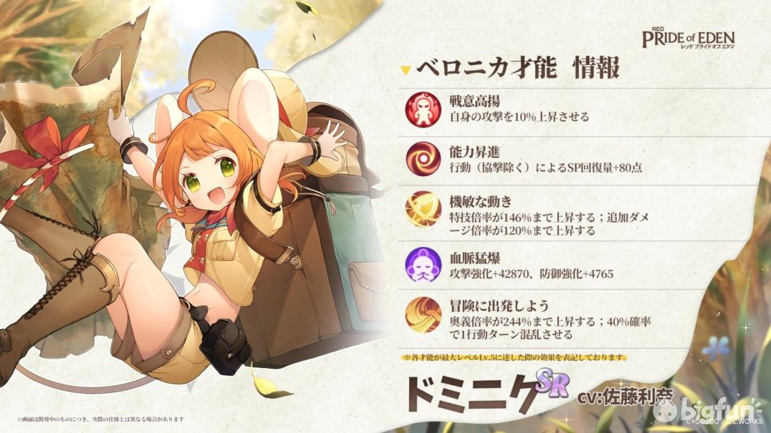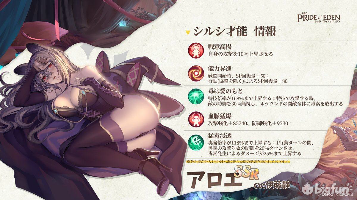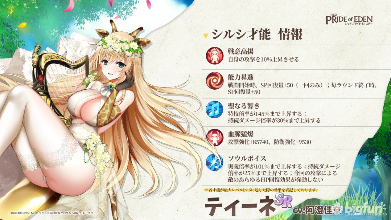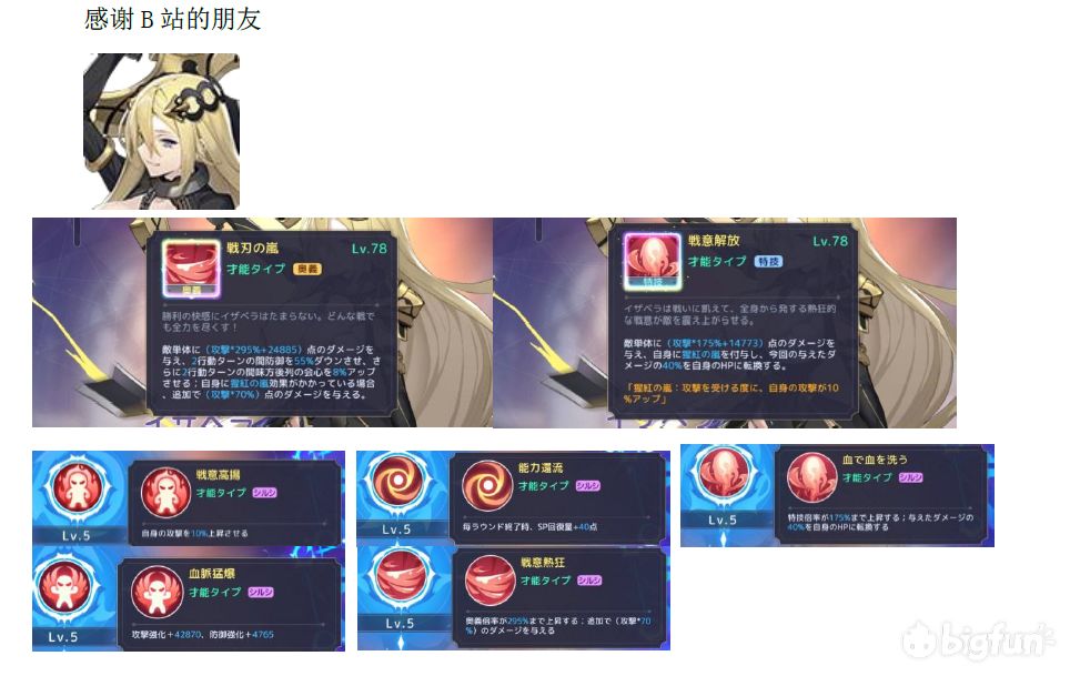 能力提升:战斗开始时,SP回复量+50,行动(协击除外)攻击时SP回复量+80毒是爱之源:特技倍率135%→169%UP,无视目标30%防御力,并使全体敌人身中毒素(受伤害增加5%),持续3→4回合