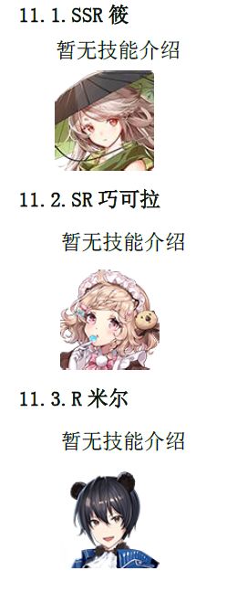 11.1. SSR筱11.2. SR巧可拉11.3. R米尔