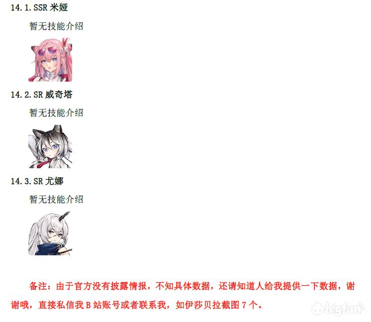 备注:由于官方没有披露情报,不知具体数据,还请知道人给我提供一下数据,谢谢哦,直接私信我B站账号或者联系我,如伊莎贝拉截图7个。