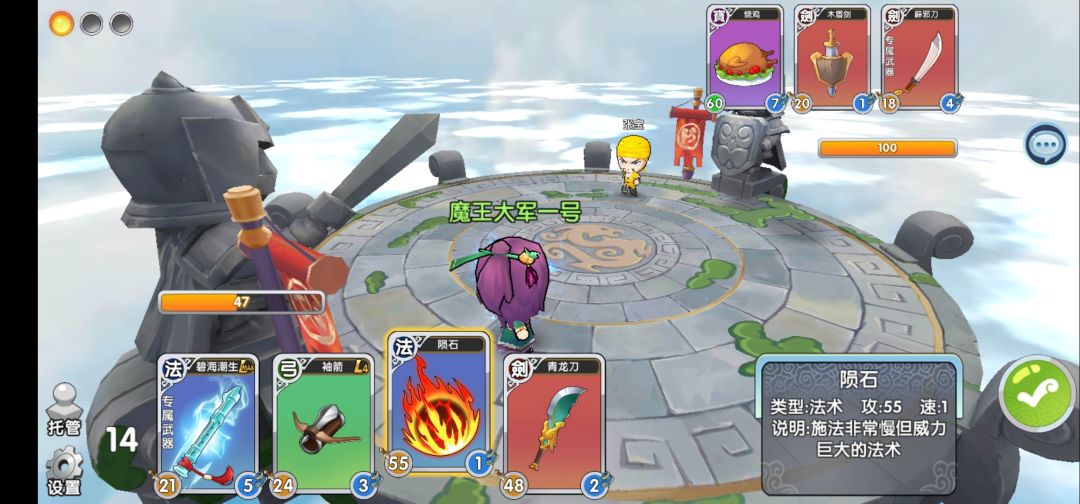 要喝酒?他两下速度都比较快,伤害54+18=72,如果我第二下用盾确实没死,但第三下呢?我出来一个金甲或者复活然后高高兴兴的使用于是打赢了?而且他还有概率第一下刚好破我打算使用的冰锥,破了木盾我两下死,破了酒那为何我不自己给使用。。。 这个想说明的同样是对于武器的记忆,以及武器速度,后面出来啥应该只有自己才知道。以及三回合都是谁先手后手。两下武器有没有打死他。