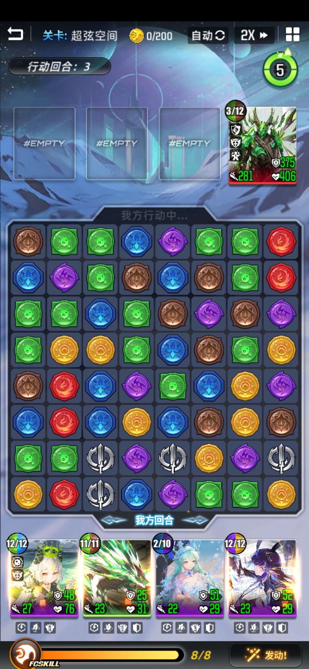 这队手操可到100层,目前80多层,运气好能三回合带走,买5档礼包,上面无法自动