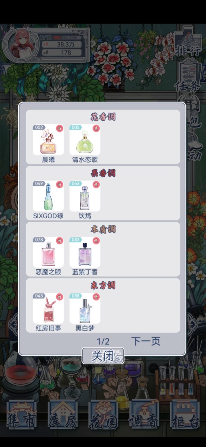 清水恋歌和黑白梦要用黑市花,不喜欢可以分别换成桃色初拥和白色魅惑(不在意价格的话懵懂情诗和挚爱更快