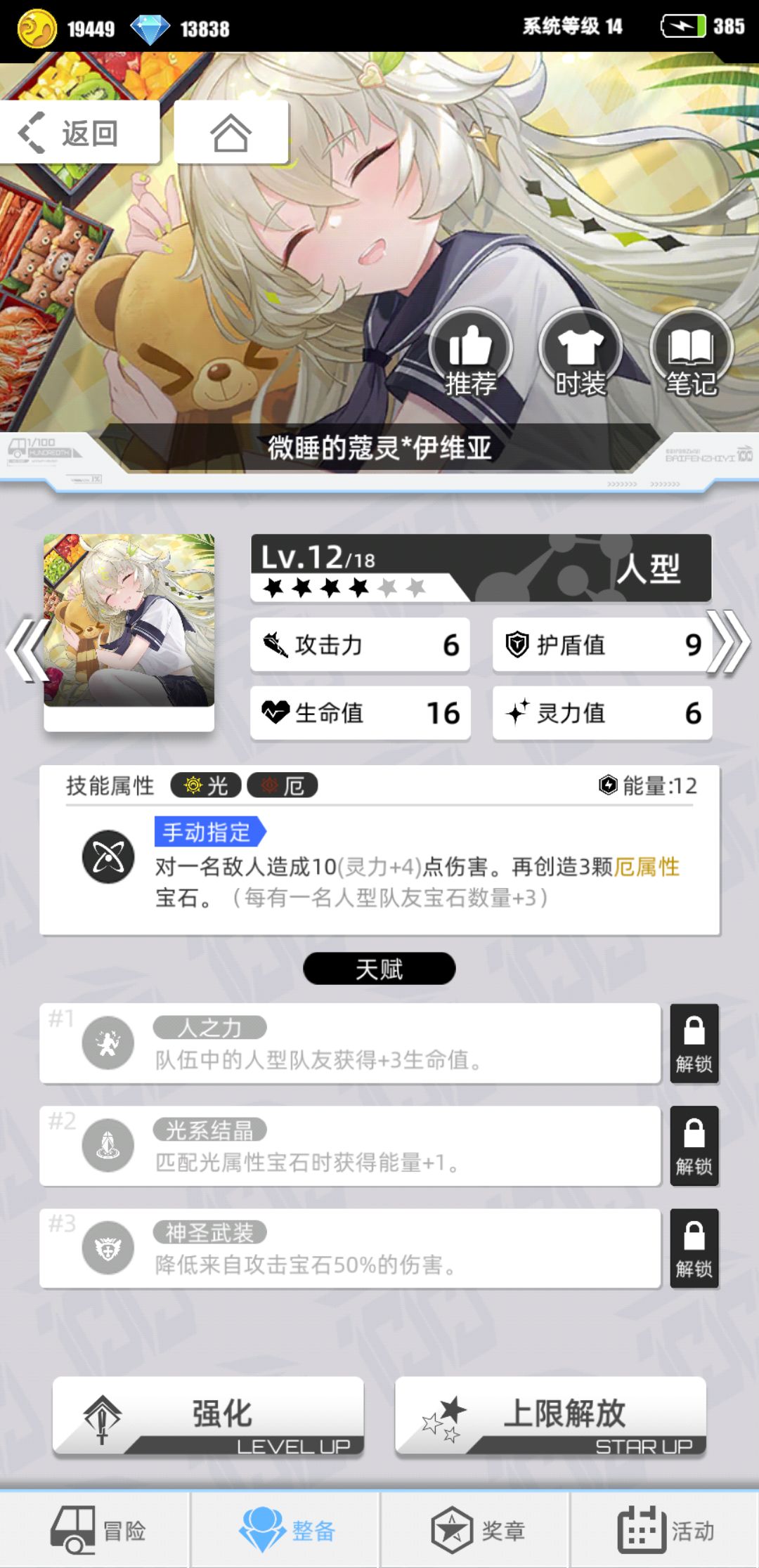 先说超频拉菲,移除宝石造成额外伤害的特性可以小“洗牌”和补刀,这张卡对应的是依然。电子狂想曲拉菲的技能确实在睡神队没有什么作用,但是她和超频拉菲都有一个匹配四个宝石全队加血的天赋,保证队伍坦度在应对超弦的时候多少能发挥点作用。目前游戏里人型角色太少,后续有了更好的人型我会继续补充。