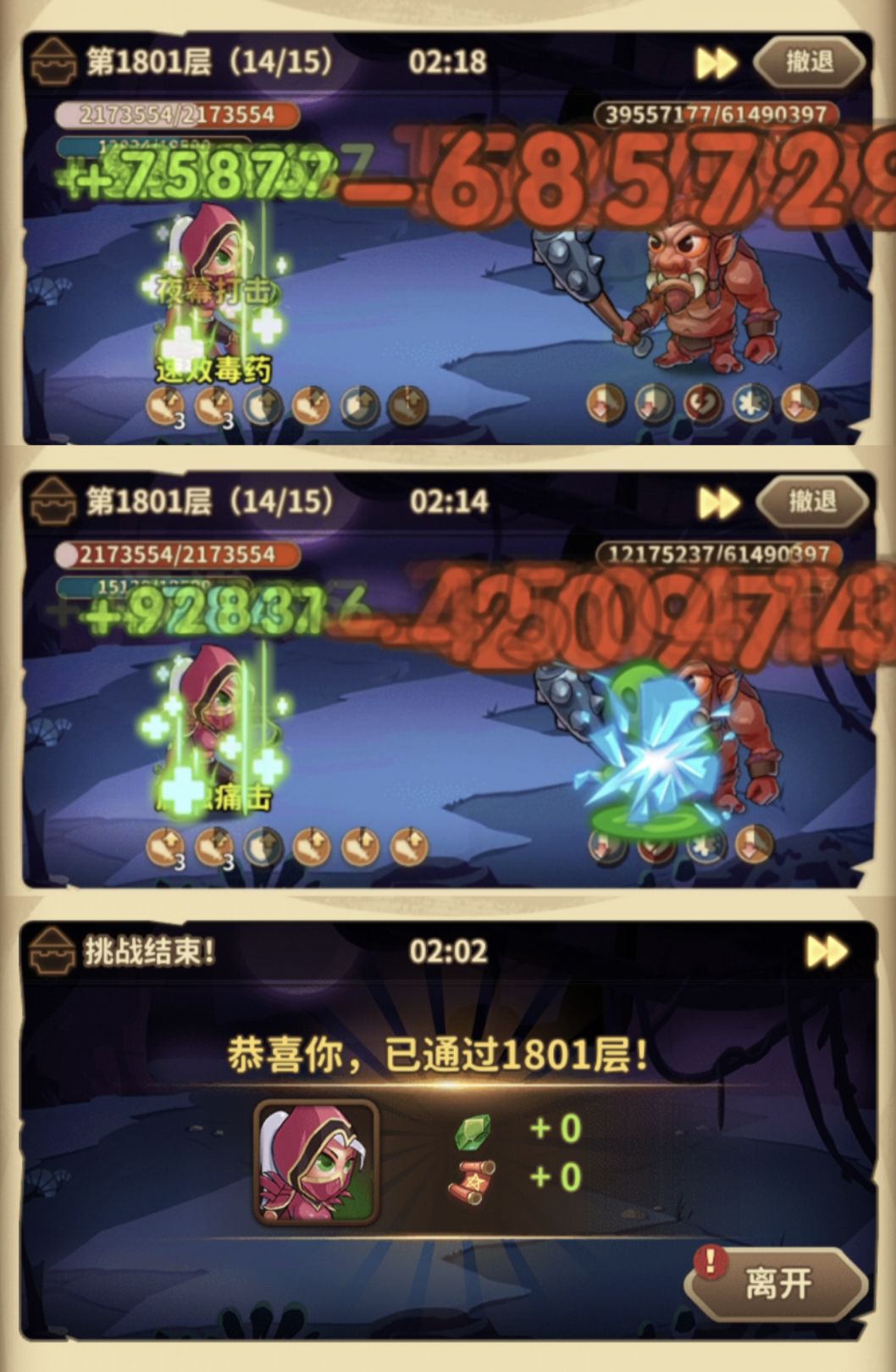 看到这个详细面板装备具体有多差,懂的都懂了吧这个就不多说了,就这一身地摊货一会我们微调一下,可以开着倍速拉满难度在1801层乱舞,这堪比科技啊哥们这东西,我就问你这个活狠不狠哈哈,如果宝子们感兴趣在做这套装备的时候,我建议要注重攻击力、生命值、暴击恢复、连击恢复,一套好的装备、巅峰850左右血量应该在195w以上,攻击力和战斗中的恢复也会相应的更高一些。