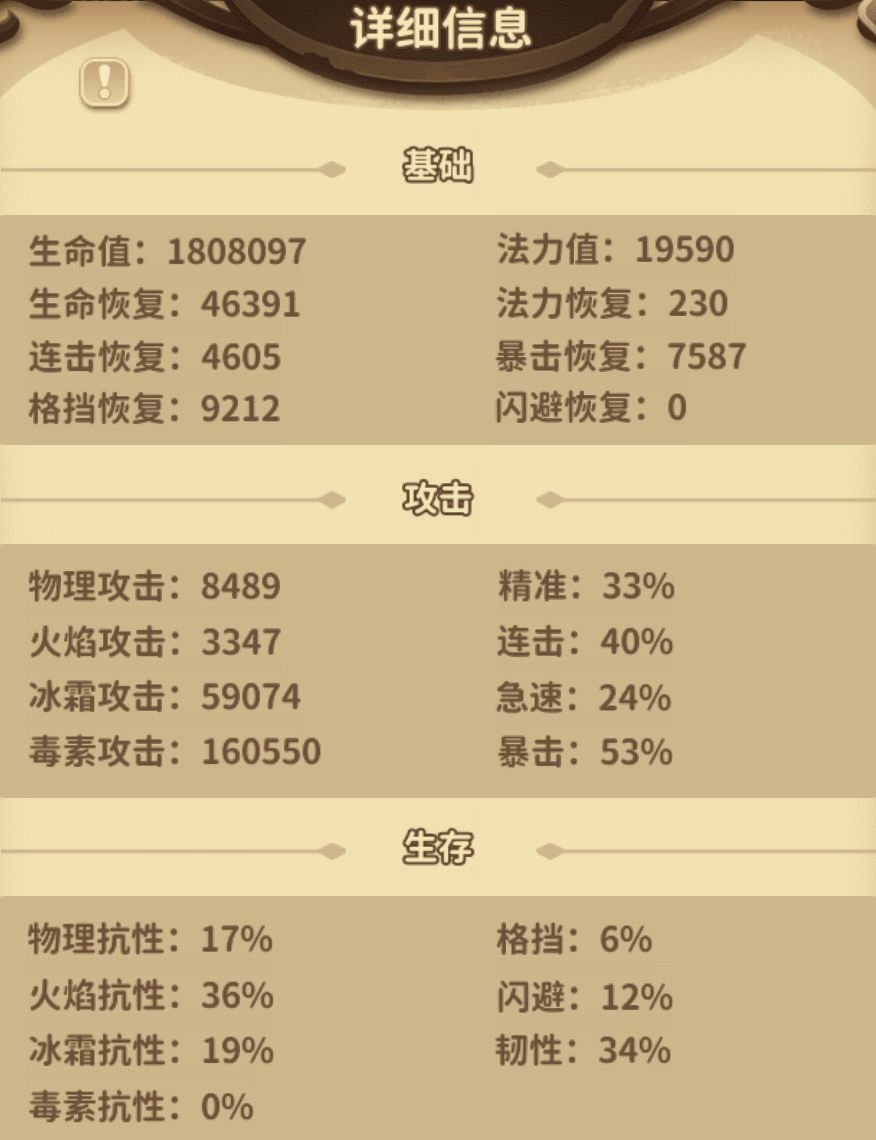 装备词条 : 8条毒素攻击、4-6条生命值、4-6条冰霜攻击、恢复类词条4-6即可。