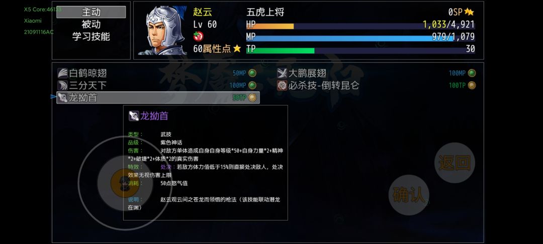 云哥还有一个新增主动龙拗首,敌方生命值低于15%血量无视伤害上限斩杀,boss同样有效。
