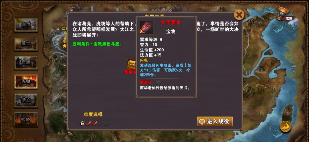 整个第四章获得的装备里面最最重要的就是五色石,尤其是对新人而言打副本的时候有个五色石增加保命的次数,当然还有太平要术,电戒指的升级版,一次电五个敌人还可以加法力非常奈斯的装备。拿太平要术的要求是必须三辣椒完成相对应的任务才可以获得不需要通关,五色石头是需要三星通关积累星星,星星点数够了就可以领取,三星通关对辣椒难度没有要求所以建议用最低辣椒通关就可以快速领取成就。
