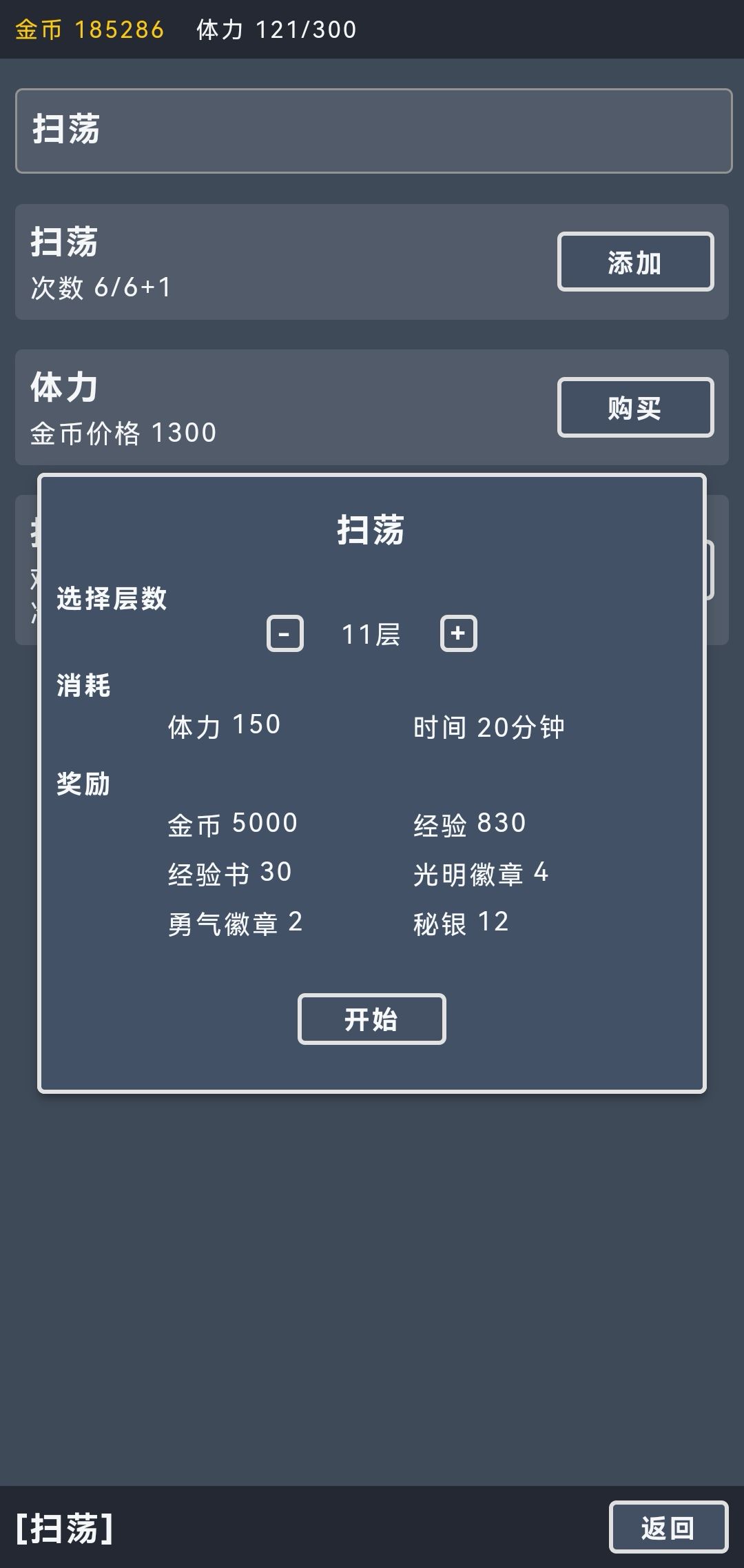 个人认为扫荡是用来刷经验书的,不适合刷金币,后期是不缺经验书的。