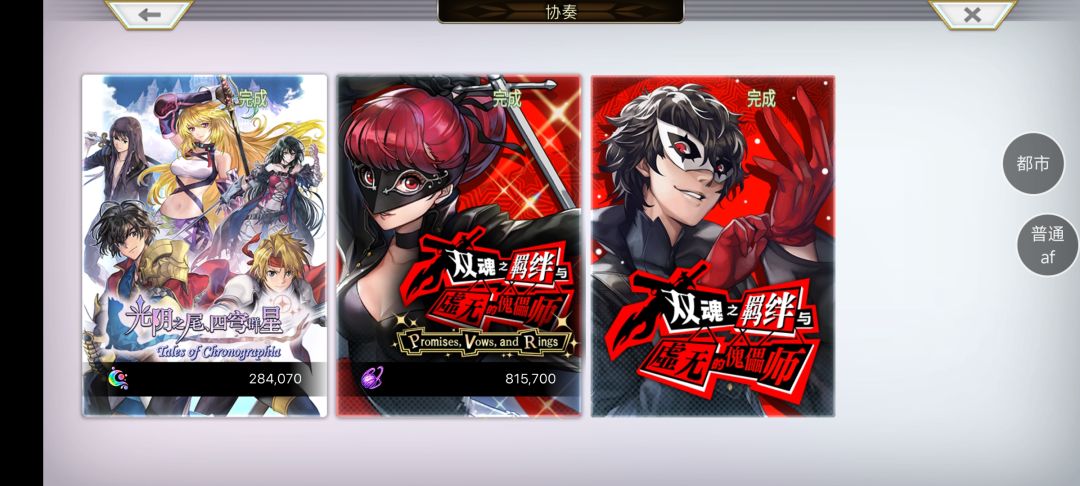 记录——协奏里面可见,在别的游戏里叫联动。往往可以获得超强的角色,以及其他游戏的主人公。比如雨宫莲。目前开放p5r p5r2,传说系列联动。即将开放cc联动。
