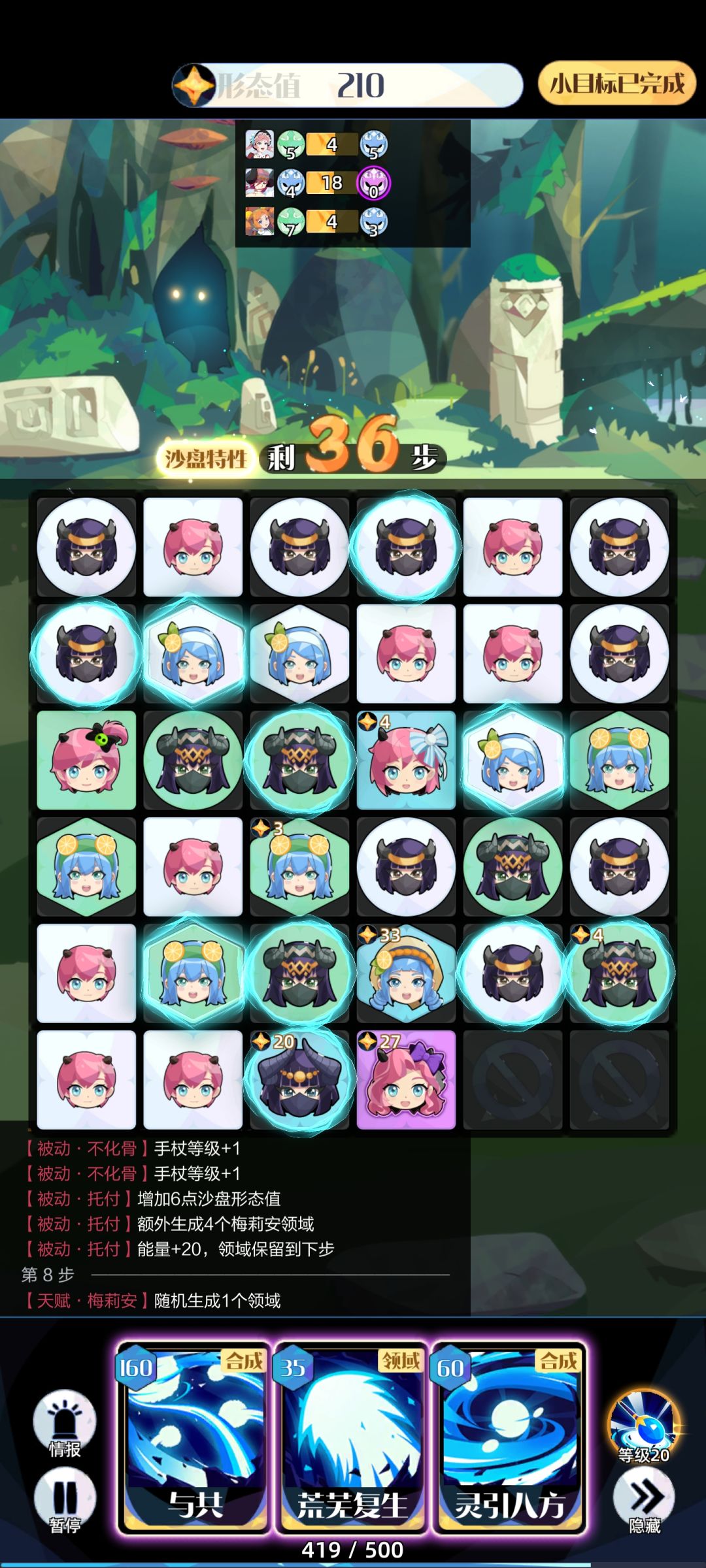 A:首先蓝量不允许使用与共,被动需要四领域回蓝,复生消也凑不够,大概有三种选择,一是最传统的拖消,拖掉r5c5赌掉落消最多两领域449(+14);二是灵引r5c2,通过掉落消除去达到消除领域回蓝的目的,419-60+28=387+38=425>419,即赚6点能量和火,盘面的调整使得有更多的选择;三是复生r4c4,拖掉r5c5,消除三领域,若上方成功掉落消除即可被动回蓝,419-35+30+21=435(+7+44=486),对于选择一和三,c5掉落情况一致,所以若产生至少一掉落消,则选择三收益远大于一,二由于不确定性过大不做讨论,为了下一步考虑我会选择三,总的来说就是权衡收益与风险,玩的多自然一眼看出,没有想的那么花费时间。