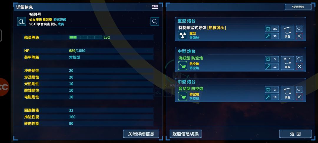 ②仙女级重装一艘(用前期送的祝融号即可,带上一发核弹,其它接口全部用防空炮)