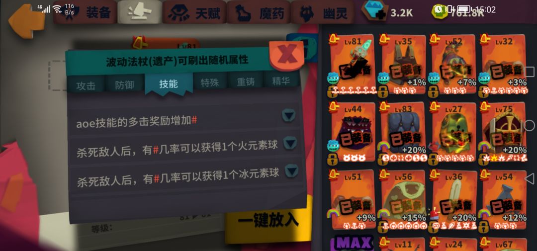 ②对于法杖武器来说,武器天赋里有各2个元素球;