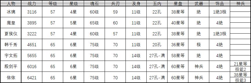 3.魂石词条属性、满星等神兵、绝+饰品,这些都是看个人运气和氪金程度的内容了,对于普通玩家上6500战力影响问题不大。