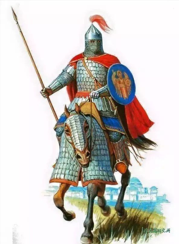图中所示即为库尔德重骑兵,骑士全副铠甲,战马也身披面甲,所过之处势如破竹、无人能挡,表现出了库尔德重骑兵作战时的英勇无畏。