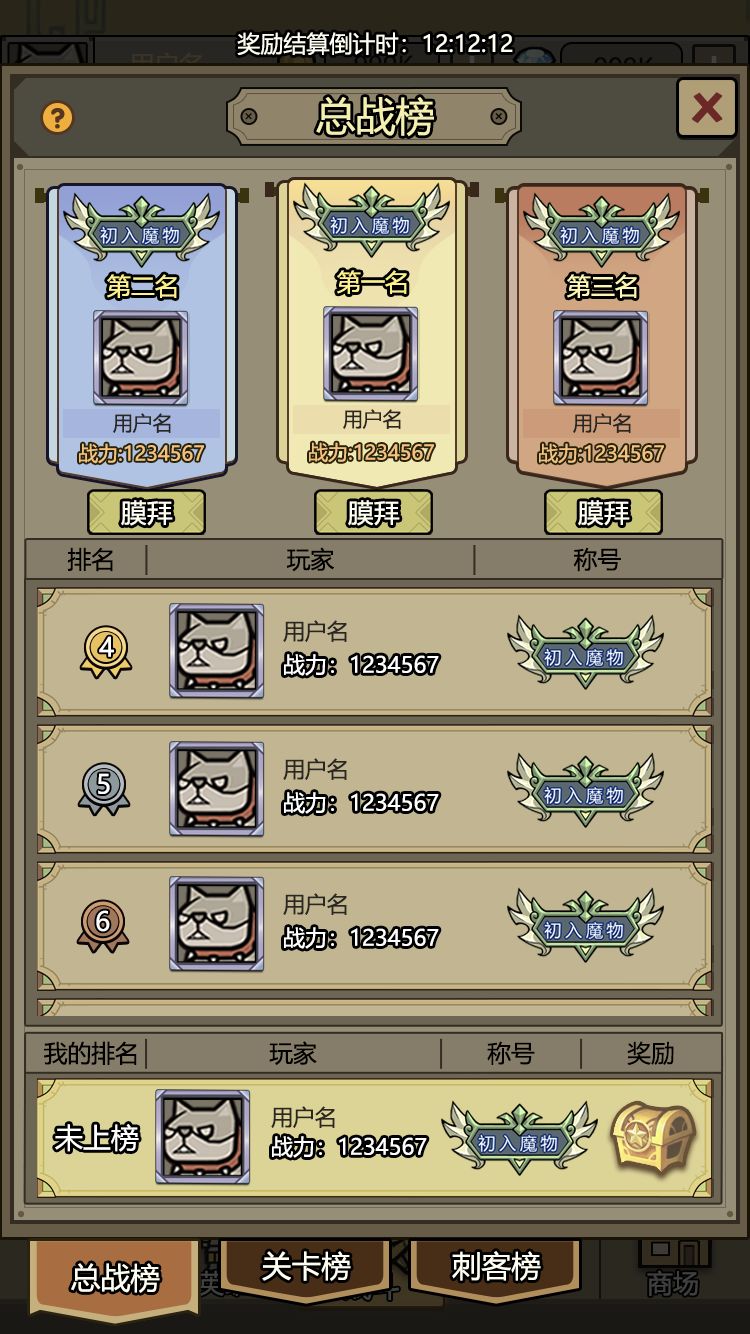 战力排行榜上记录了玩家的总战力,玩家可通过排行榜入口随时