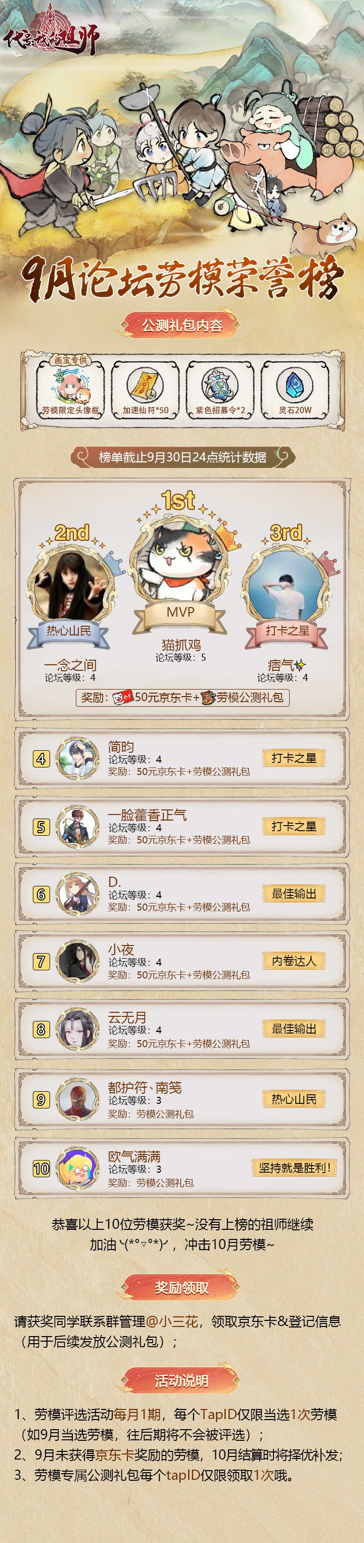 这里是《代号:我的祖师》TapTap论坛气氛组「月度表彰大会」,感谢各位祖师在过去的1个月里的热情互动、深夜内卷输出,以及坚持打卡出勤!
