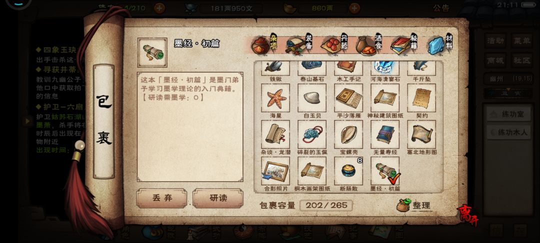 墨经24张残页我也凑齐了,每天墨子副本还是要打的,一直凑齐10个傀儡核心,就可以不打墨子副本。