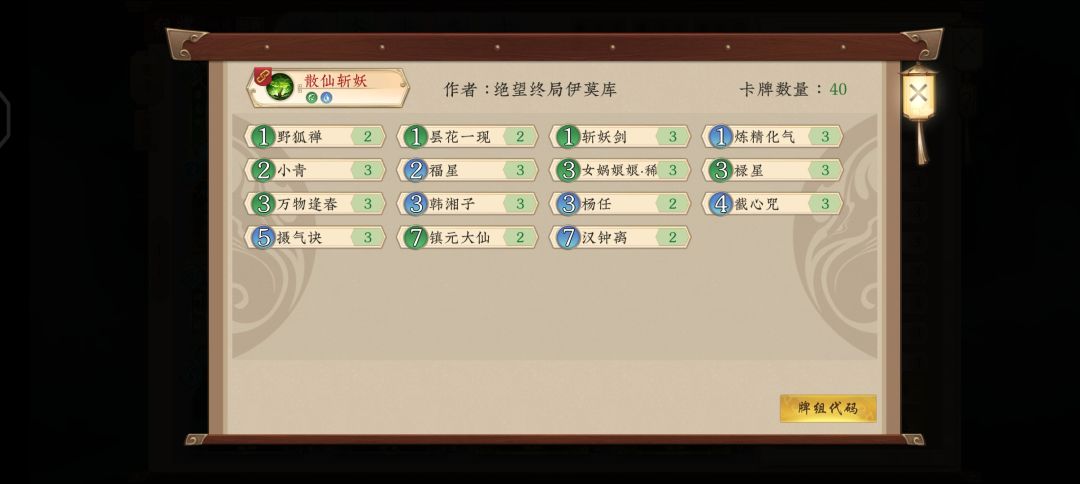 该卡组与上一期的水木散仙完全不同,是斩妖剑进攻的思路。万物逢春使这种卡组中后期的能力得到了极大提升。