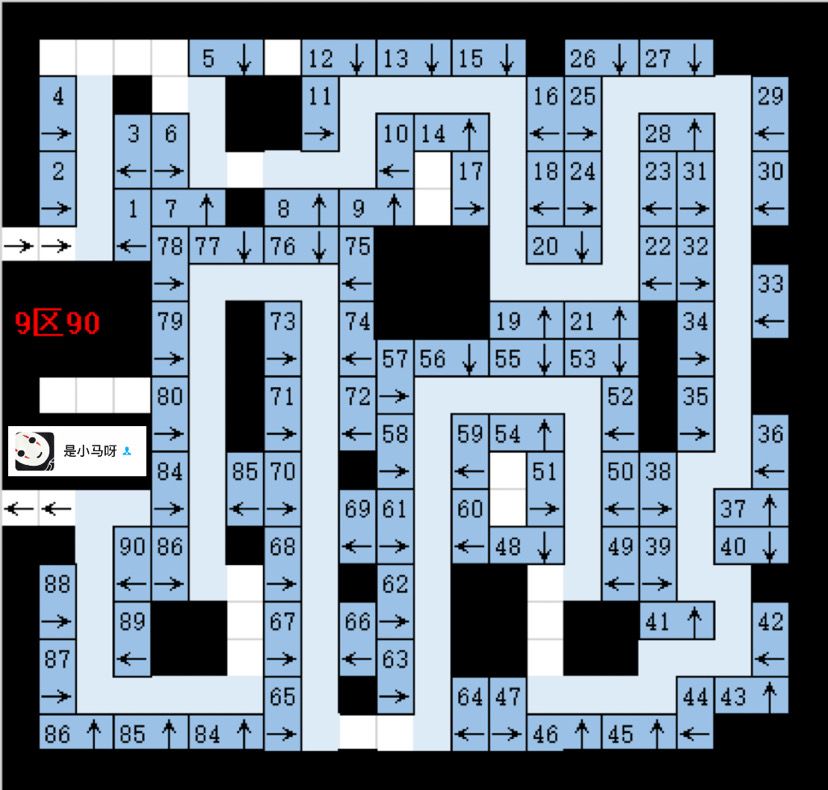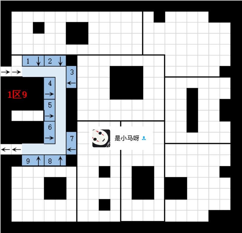 主帖最后更新了1~9区货架布局图。