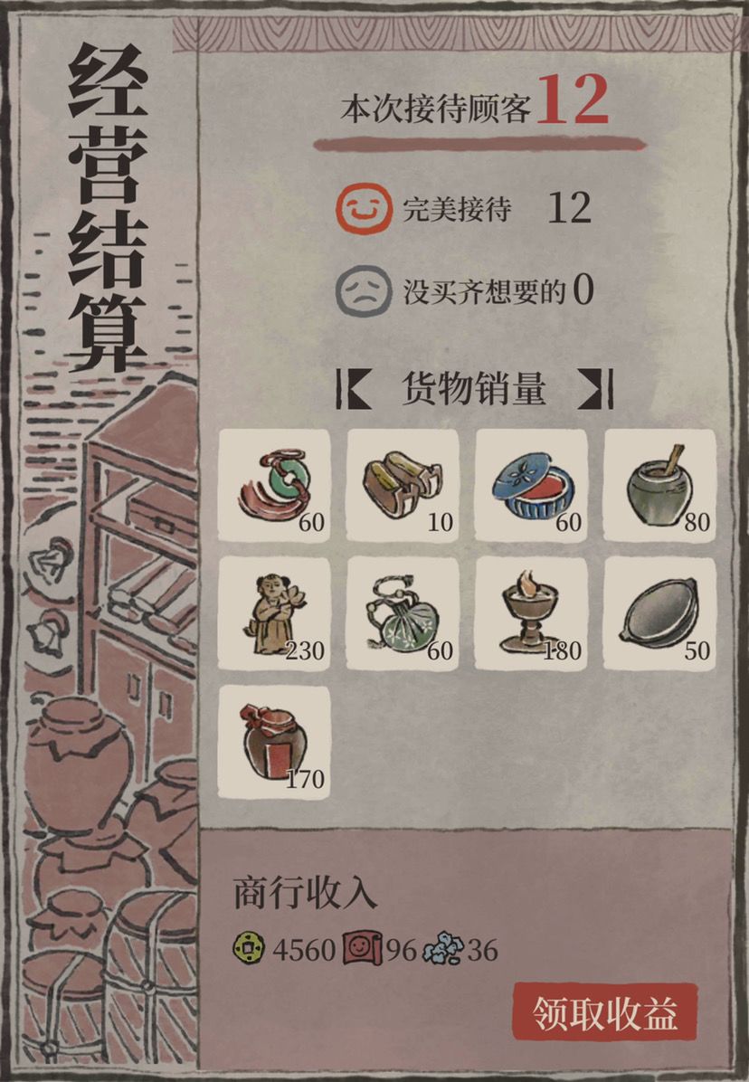10级口碑之后,普通顾客和富商对货物种类和数量的需求都会大幅提升,需提前升级相应作坊以及储备大量碎银用于升级货架。