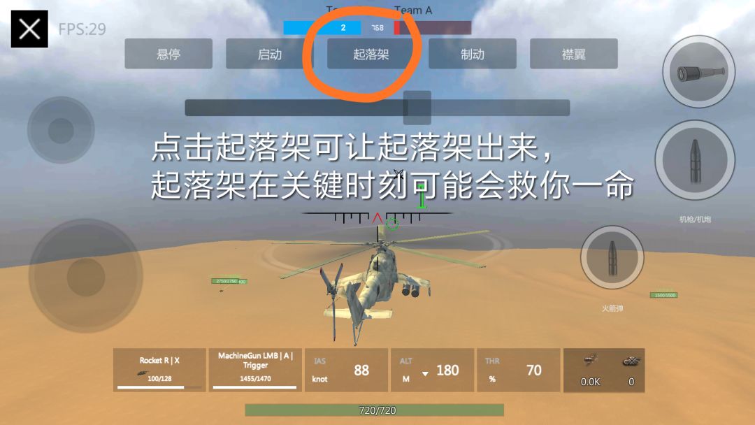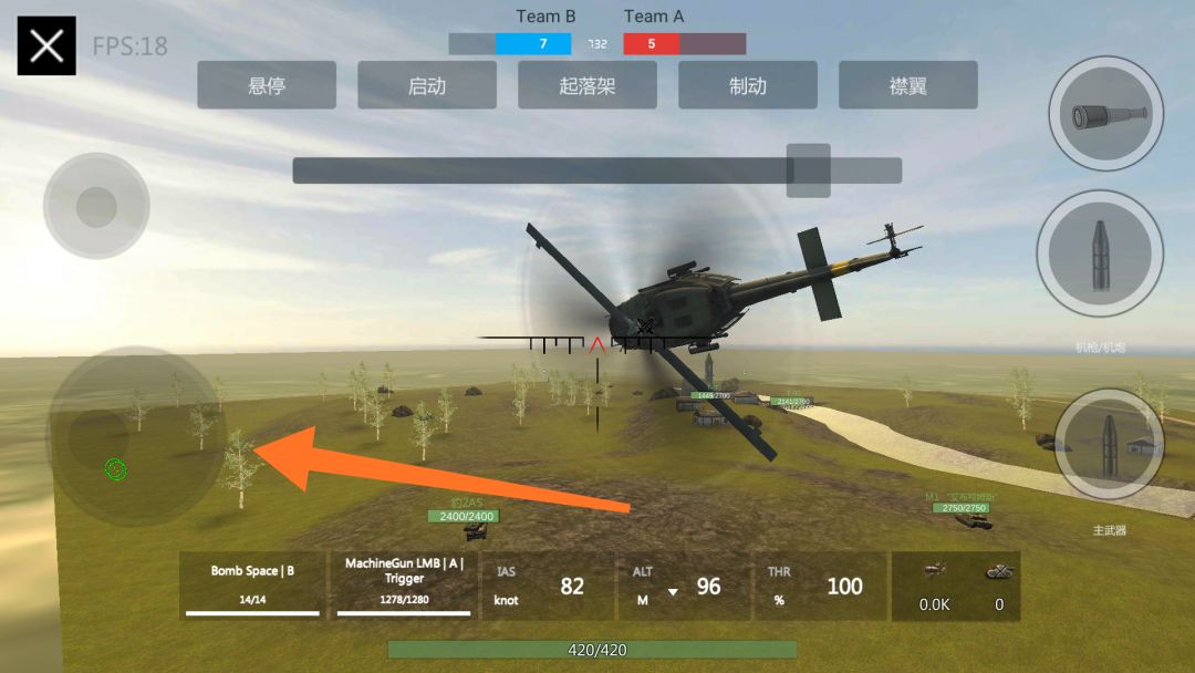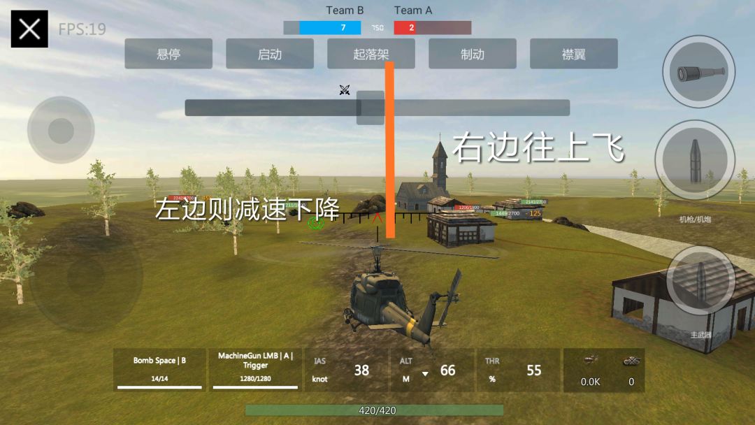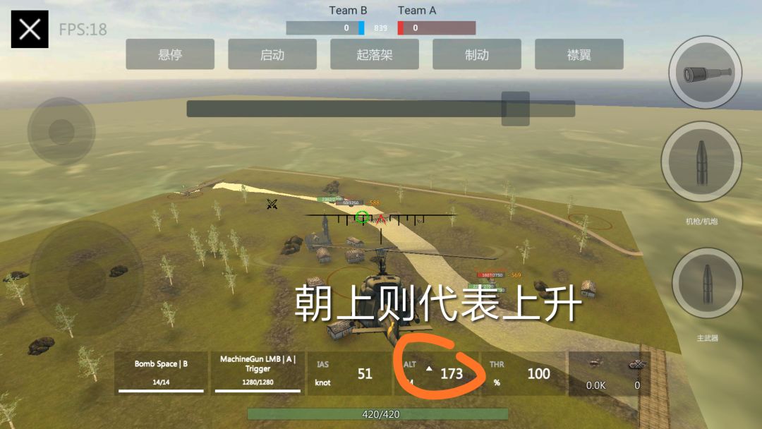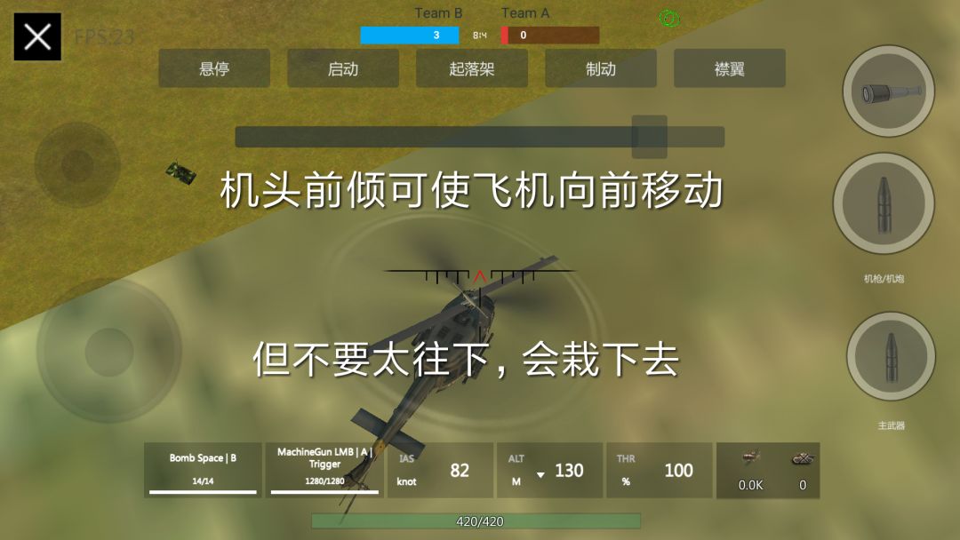 开局第一步,不要用拉杆,将机头稍稍倾斜(屏幕往下一点)