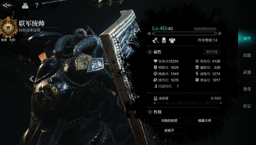 一图幻境中间9层已经通关,基本只要个夜莺和统帅就可以了。夜莺带增加20%奶量的铭文,开局和统帅守墙角,统帅武器技能带增加伤害的,还有不做行动回血的。光环带统帅光环,基本就是看情况放嘲讽和原地不动,夜莺必要时候可以去抗刀,统帅扛不住可以吃抗伤药和物抗肉,伤害不够可以吃火药,下面附夜莺,统帅面板