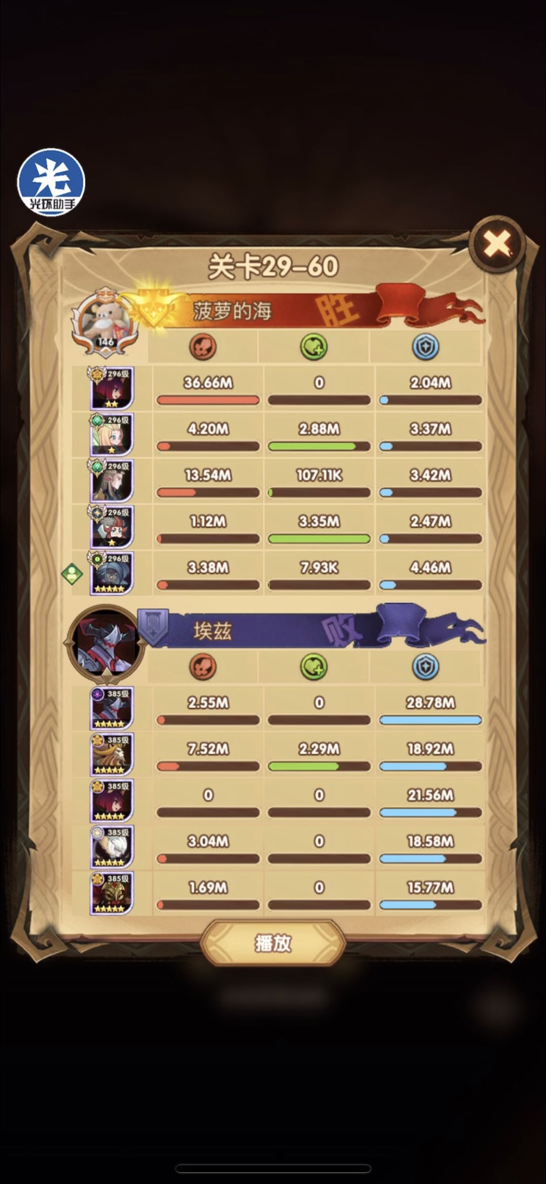 这次29章全部用的绿罩固定阵容,偶尔几关用上了工具人奈拉和凤凰。极限战力照抄可过。