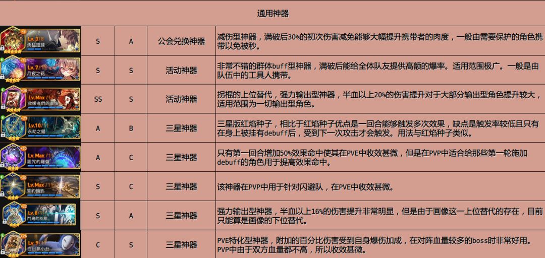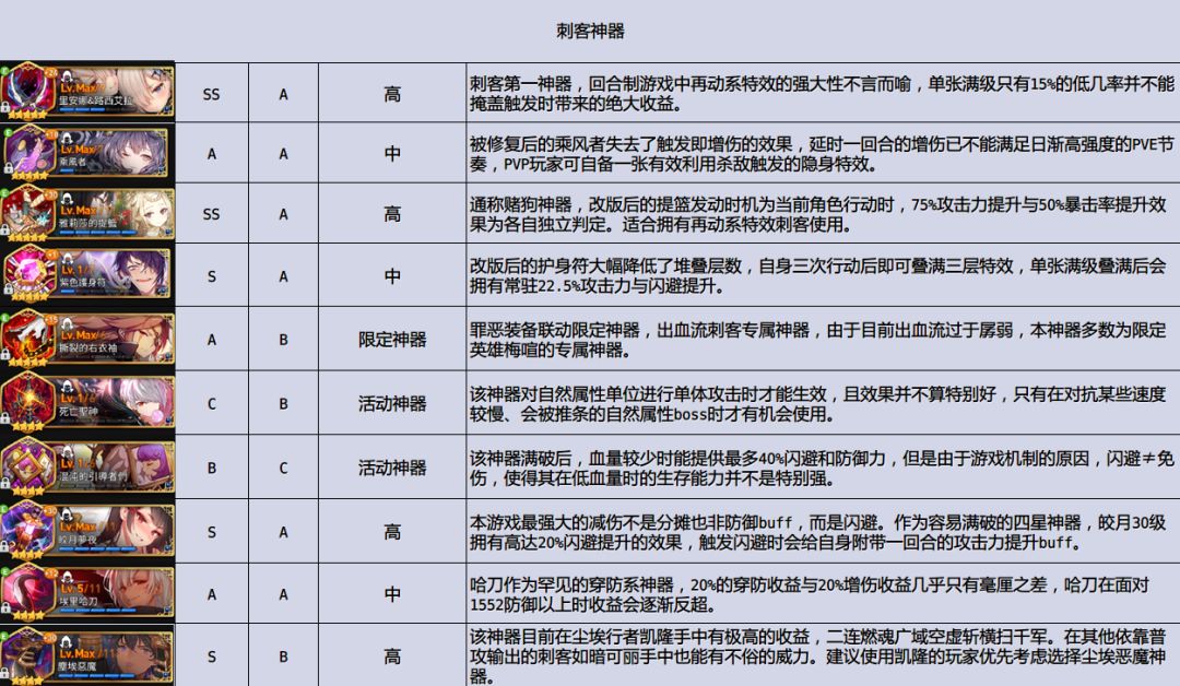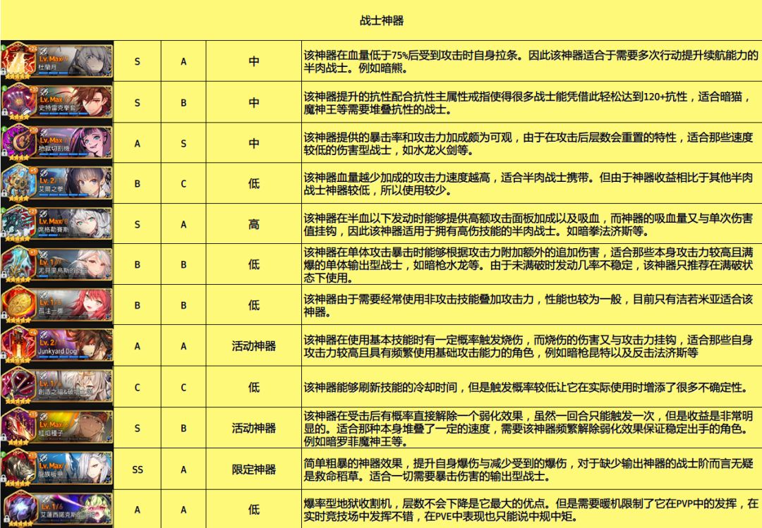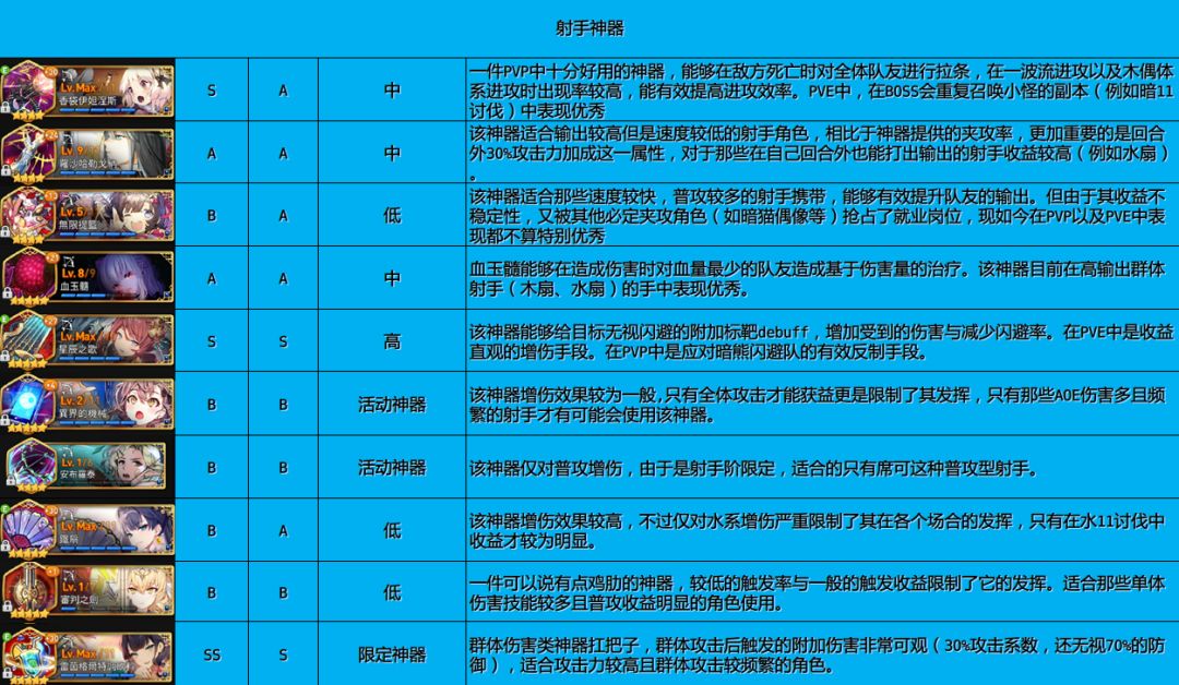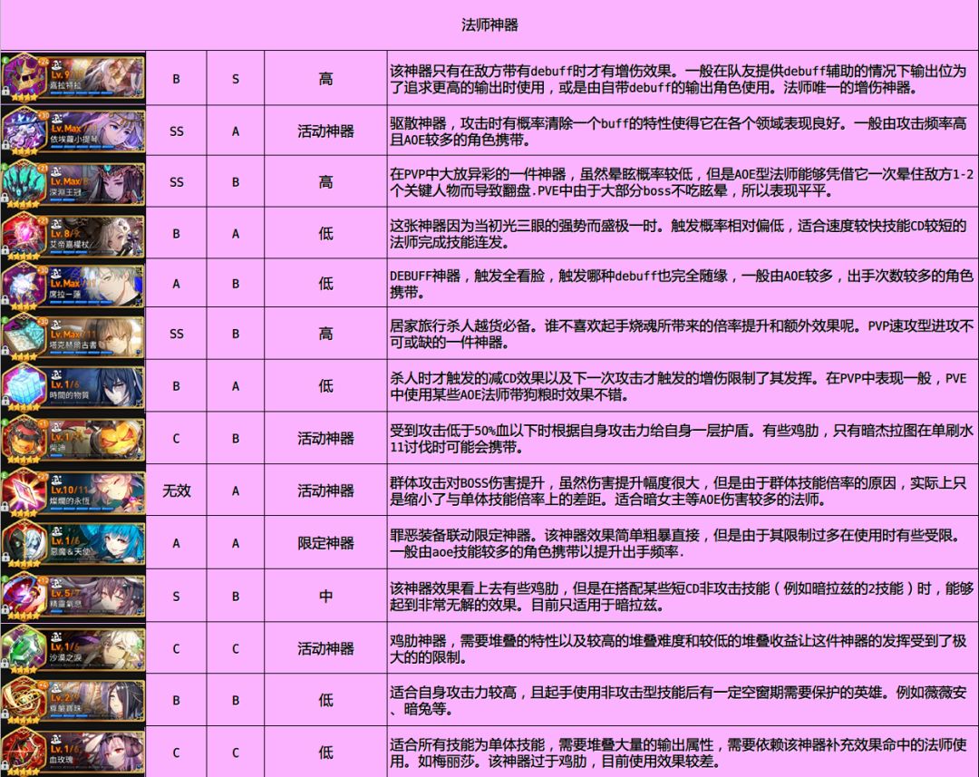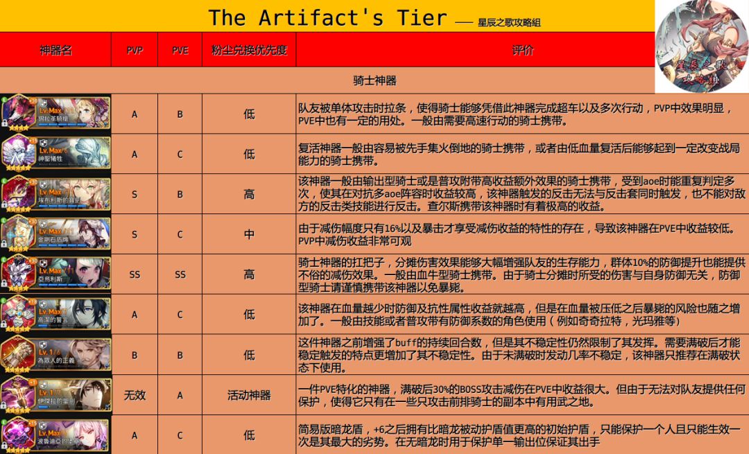 最后转发一下攻略组的神器、人物的节奏榜。