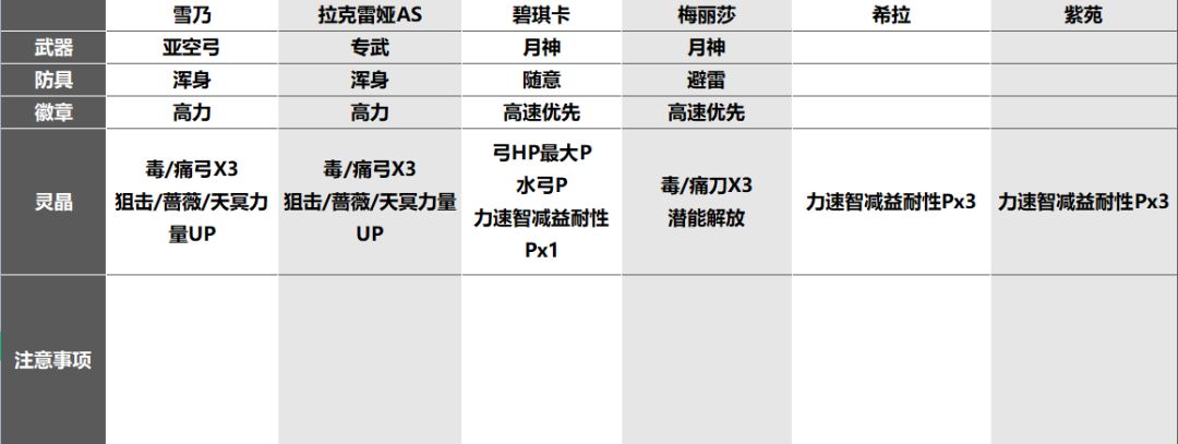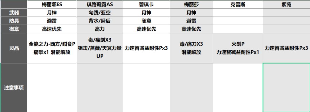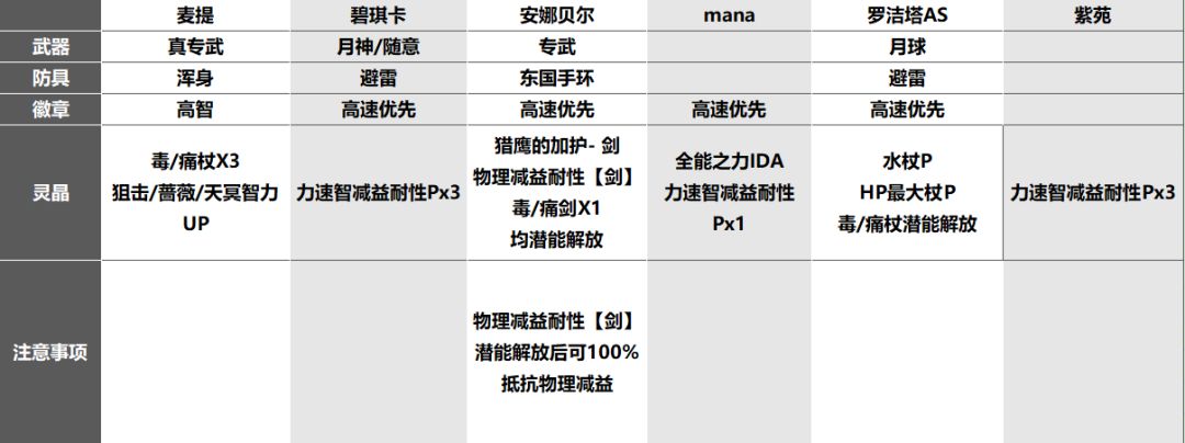 🔹双C(或追击手)/闪击,第二回合两次高额输出破2段锁血,需要配置7颗腕知速耐性P针对;【若输出足够,可适当降低需求】