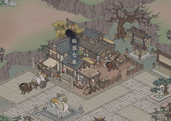 找到距离联盟议事厅不远的联盟仓库,联盟建筑产出的物资均会储存在此处,成员可根据自身所需物资,通过消耗联盟币兑换物资。