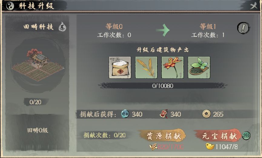 点击联盟科技界面,即可进入【建筑科技】解锁联盟建筑物,提升建筑物等级,即可增加相应建筑可生产的资源类型。捐献有两种形式,资源捐献与元宝捐献,掌门可根据自身情况进行捐献,使用元宝捐献可享受两倍的贡献加成。需要注意的是,捐献次数有限,掌门需合理分配捐献额哦。