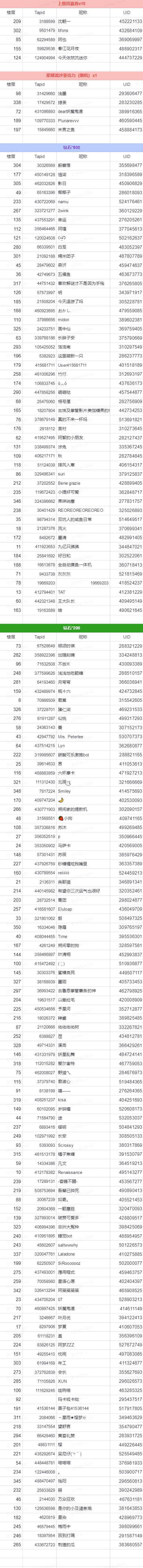 3. 随机抽选100位制作人送上钻石*200。