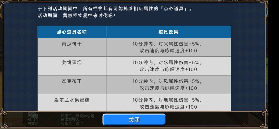 姜饼蛋糕:10min内对水属性伤害+5%,