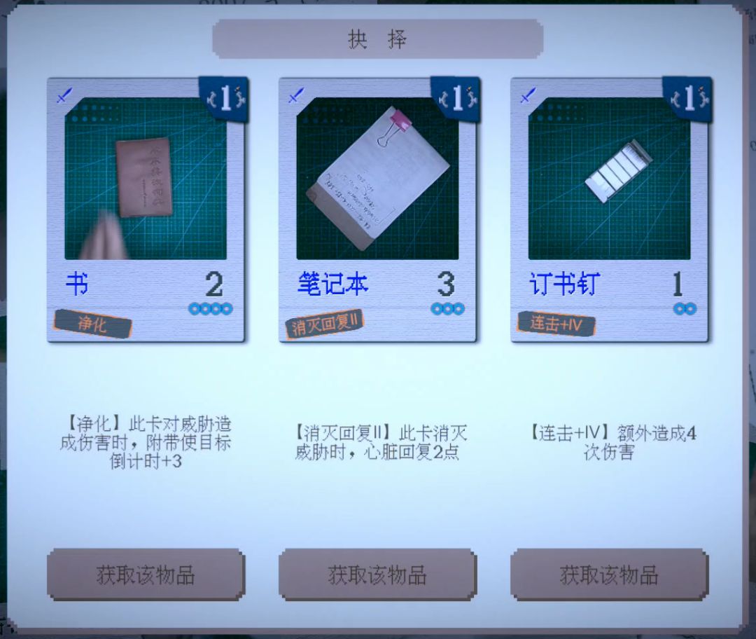 原本30点血量的BOSS是很难对付的,但是拿到这个组合之后,只要先把血量卖到5以下,使用一次订书钉就可以造成20点伤害,两发订书钉直接走脸就能把BOSS一波送走。