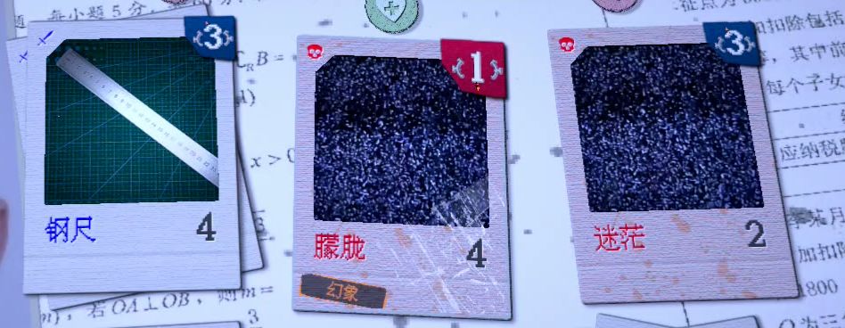 中间的一排是随机刷新的卡牌,每次行动都会消耗一个回合,敌方的攻击卡牌会在卡牌右上角的回合数倒数归零的时候,对你造成卡牌下方数字显示的伤害,同时这张卡牌会被消耗掉,刷新出新的卡牌。