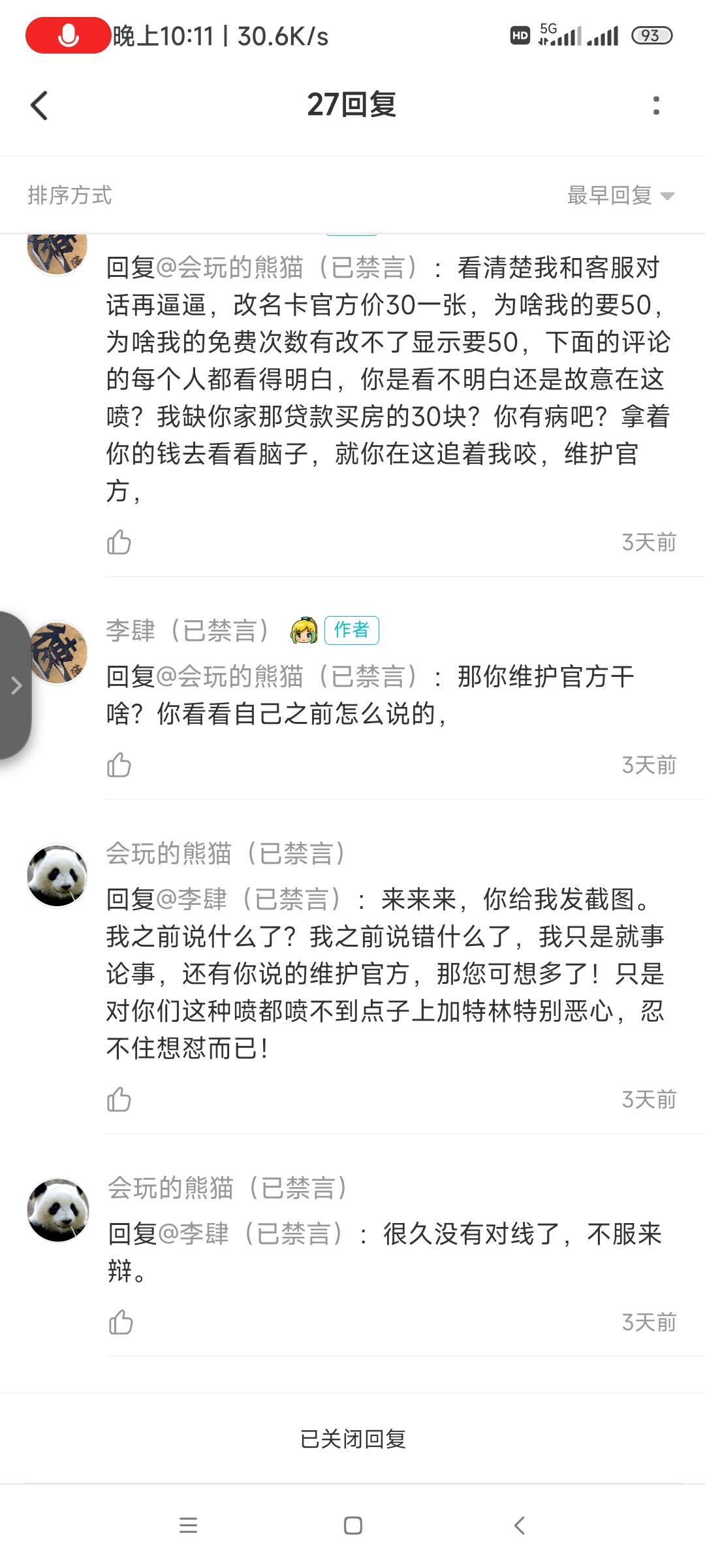 连线了个迷你受害者李肆。作者好几年没玩,当时充了不少钱,最近上号发现数据被官方改了,自己id风雪夜归人变成了一串英文,改名需要50块钱,感觉不对,就去找人工客服,被人工客服喷了,就截图在评论区给了1星差评, 让人恶心的事情发生了,一个id叫会玩的熊猫,各种扭曲事实,各种喷作者,最后作者tap号被封了,线下也是被各种电话骚扰威胁。 迷你官方抄袭别人作品,私下联动他人作品,篡改玩家数据,无故封玩家号已经是日常操作了。 无数玩家申诉无路,在维护个人利益的路上绝望放弃,还要被官方的狗无情撕咬。 请各位玩家看清楚这游戏官方的嘴脸。