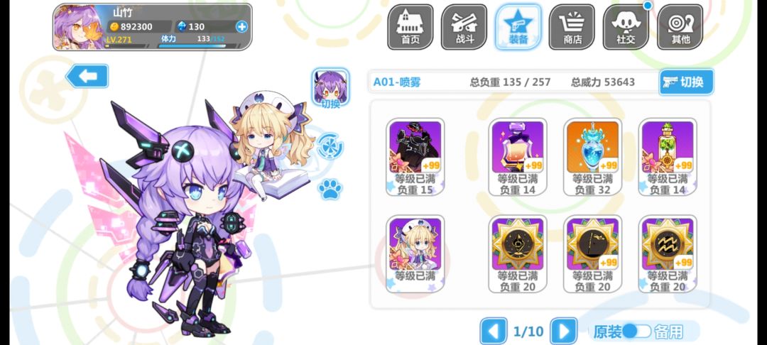 求大佬协助看一下应该怎么搭配装备,目前主要使用第9张图喷雾套,打崩坏之塔到19层就打不下去了,伤害有点刮痧。