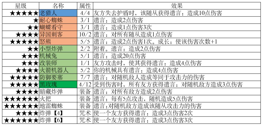 【遗言】遗言是随从死亡后触发的效果,属于后手效果,与先手同样不依赖属性值,比较典型的是成长型的怒熊和自然先手+黑玫瑰