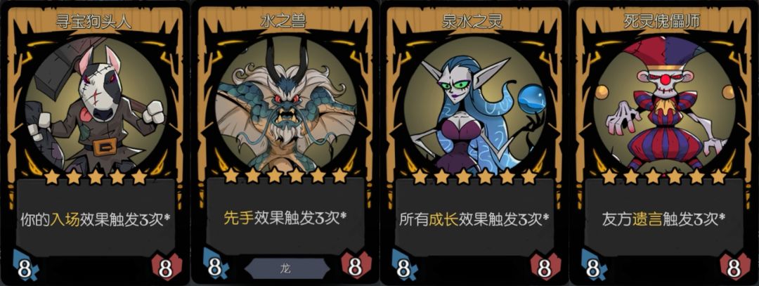 这些都是不可叠加光环类的,且除了先手龙都是中立阵营,甚至连基础属性值都一样