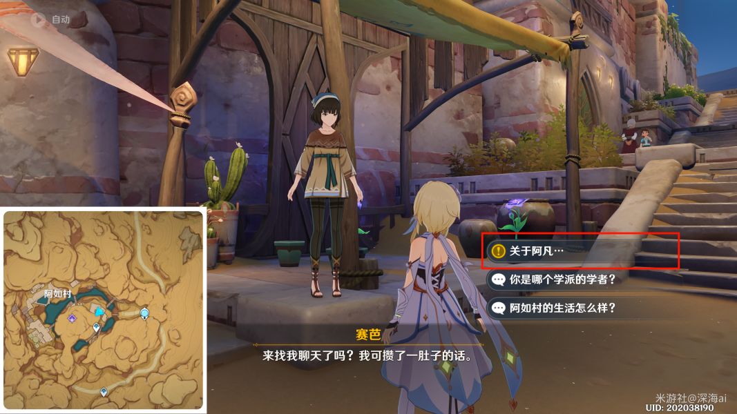 3.返回与阿凡对话,交付任务之后,再次与阿凡对话一次即可