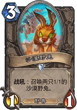 漆漆十分灵活的带了两张沙漠野兔,大幅度的加强了本卡组的进攻节奏,4费的一波野兔加异变很容易让对面难以处理。更何况目前4费有一手无面投火以及青铜龙,万一变出这两个其中之一对面基本就吐血了。当然如果是三个杂毛的话也不是不能接受,在4费对面基本解不干净,留下一个就有可能被我们不稳定异变一路上去再来个大哥。(当然还是弟弟的话,兄弟你还是先回非洲吧)